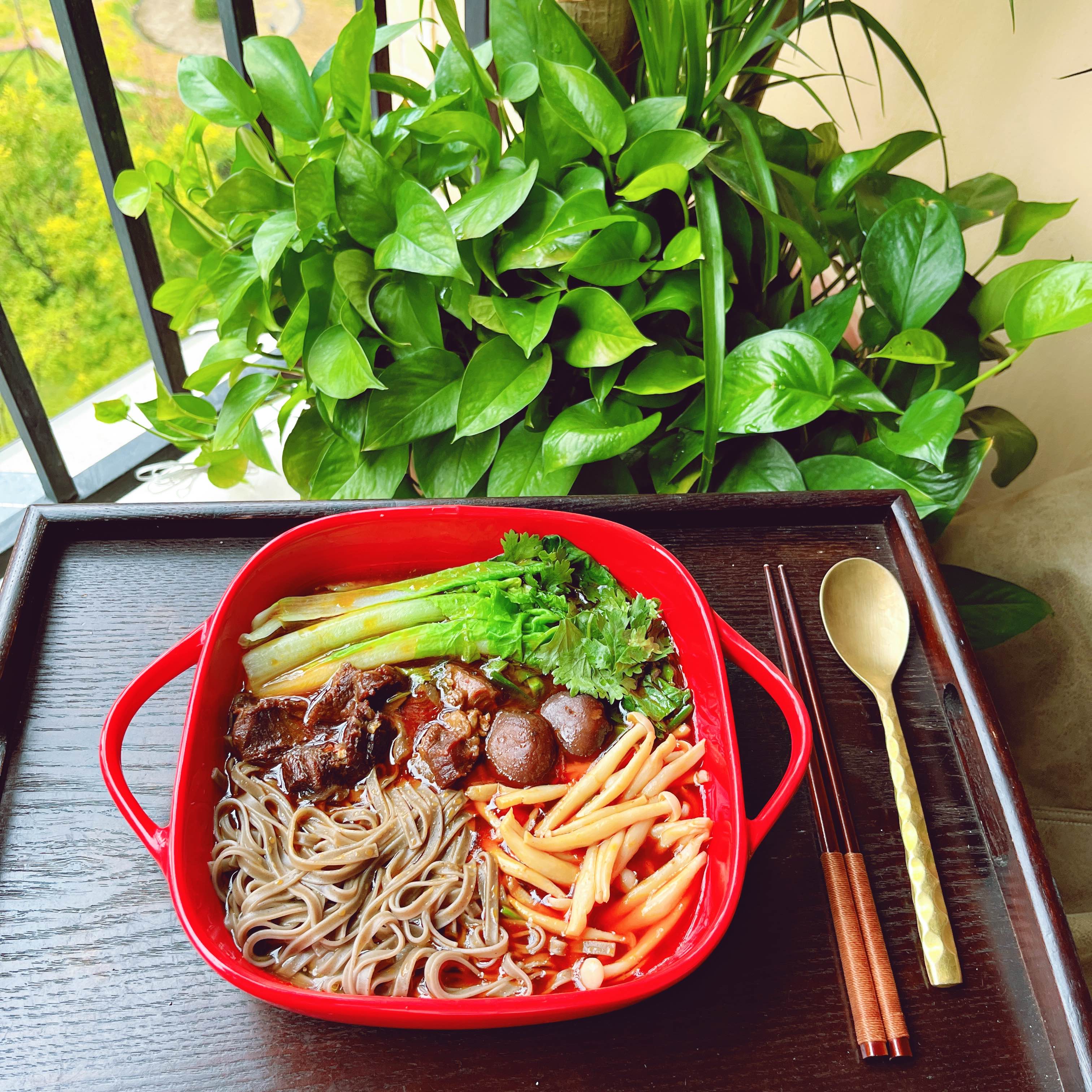牛肉 香菇 海鲜菇 青菜 荞麦面