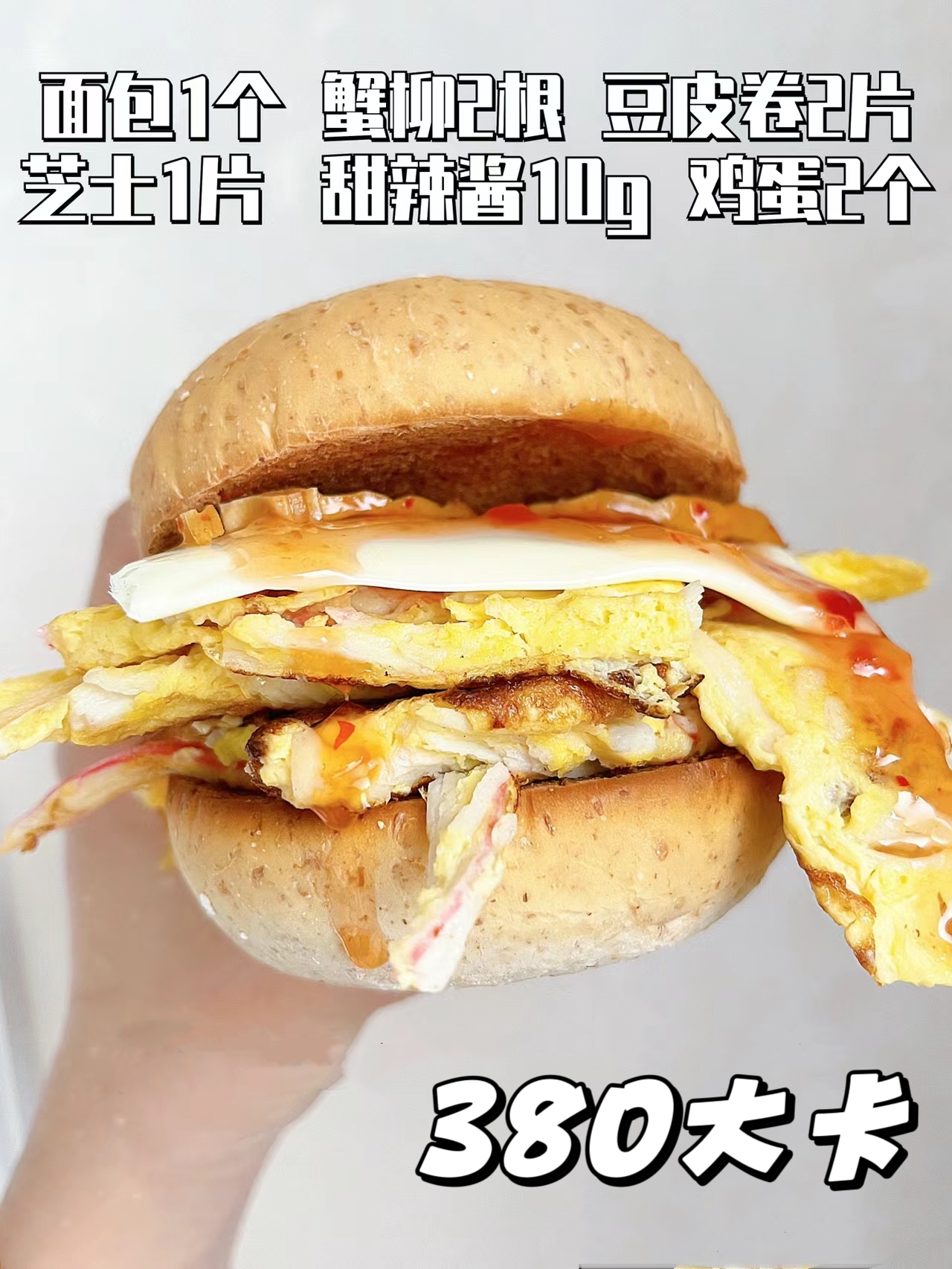 🥥食材:全麦面包➕蟹柳➕鸡蛋➕芝士片➕牛奶➕甜辣酱➕豆皮卷(可不加)
