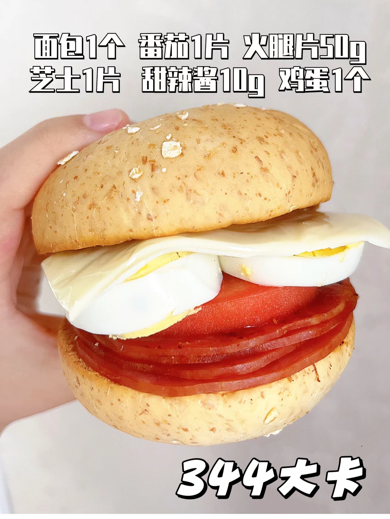 🥥食材:全麦面包➕芝士片➕火腿片➕鸡蛋➕甜辣酱番茄