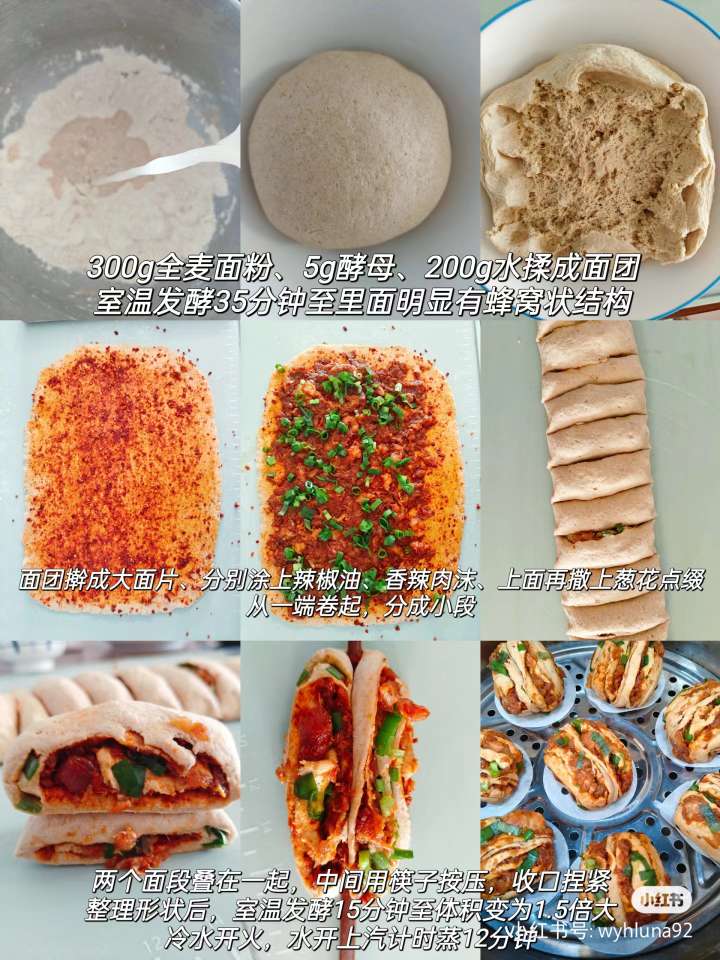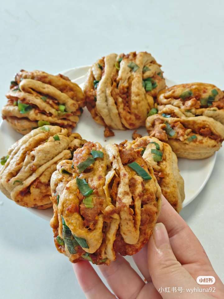 粗粮也能这么好吃!来做全麦香辣肉沫花卷!