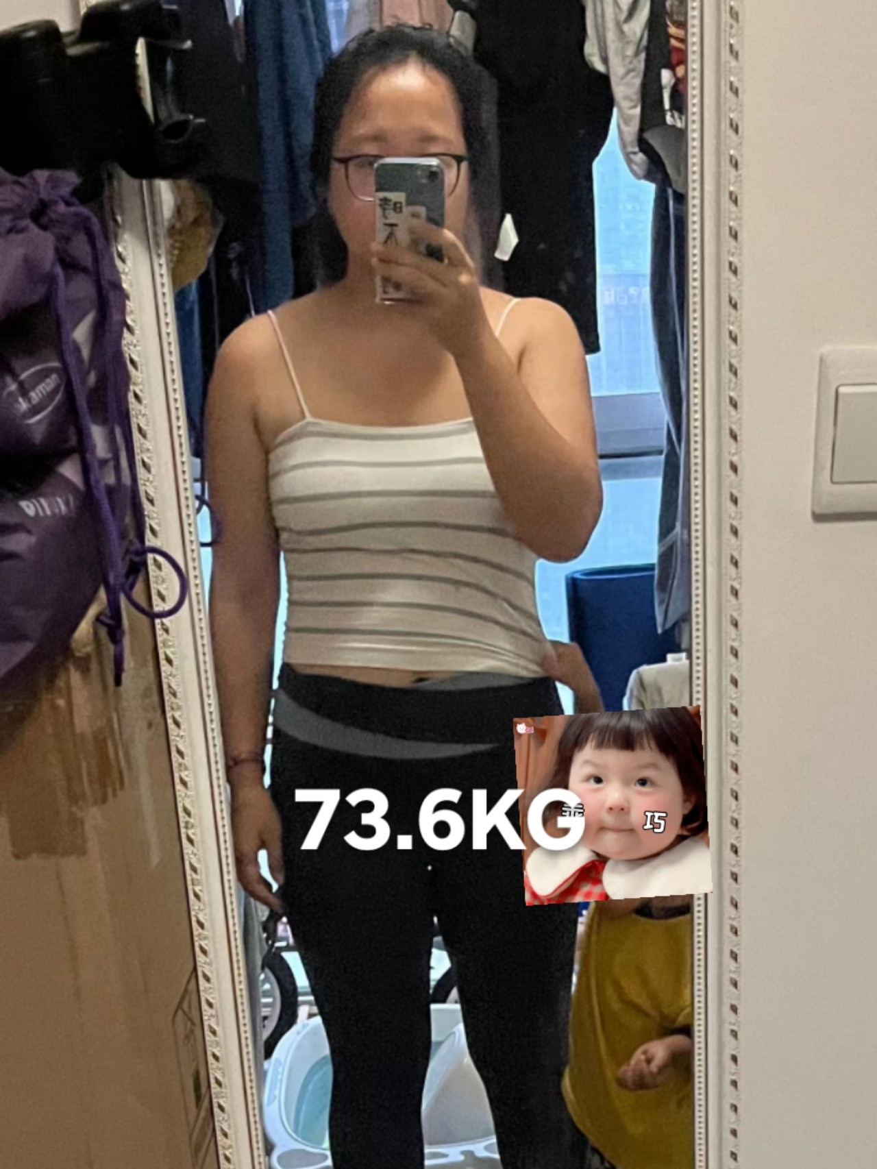 姐妹们好,我是王晗,黑龙江人,目前定居成都,生完大宝,体重飙到了190.8斤,截止国庆,我已经瘦了43.6斤啦!