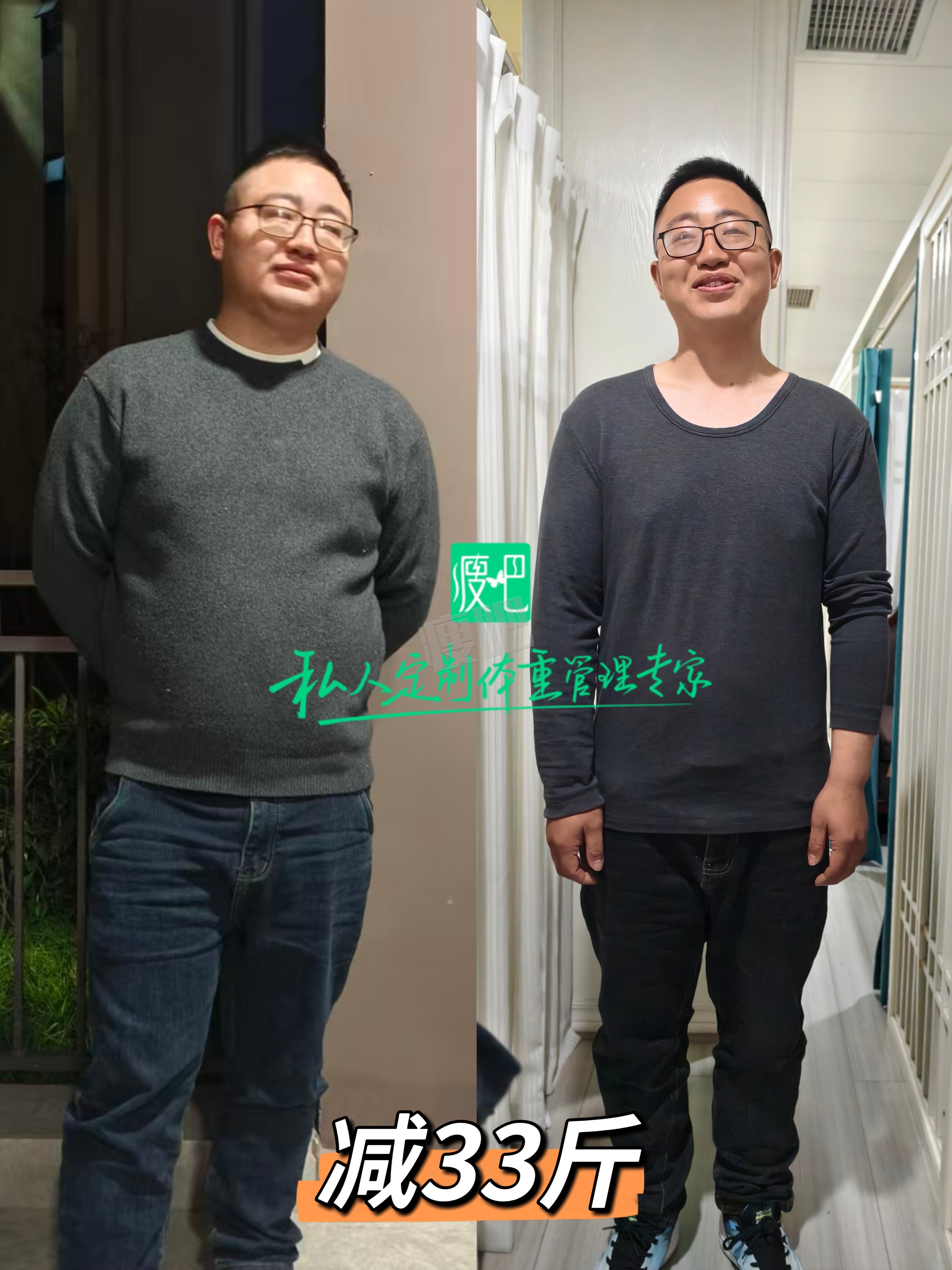 大家好,我是温暖人心的寄居蟹,来自四川自贡,是一名职场人士。我的身高175cm,使用瘦吧减脂APP进行减脂有95天了,从最初的104.4kg,成功减到现在的83.4kg。 在这95天的减脂旅程中,我最大的收获不仅是体重秤上的数字,更是对健康生活方式的深刻理解。下面是我减33斤时候的对比照